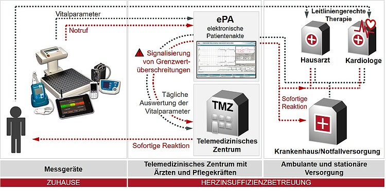 Das in der TIM-HF2-Studie verwendete telemedizinische System beinhaltete vier Säulen der Betreuung: