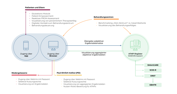 Der primäre Endpunkt von INTEGRATE-ATMP ist die gesundheitsbezogene Lebensqualität. Sekundäre Endpunkte sind die Zufriedenheit mit der jeweiligen Intervention (jeweils Pati-ent*innen- und Versorger*innen-Perspektive), Gesamt- und Ereignisfreies Überleben sowie weitere krankheitsspezifische Endpunkte. Insgesamt werden 650+10 Patient*innen einge-schlossen (500 adult, 150+10 pädiatrisch), wodurch eine ausreichende Power zur Aufdeckung von Gruppenunterschieden vor und nach Einführung der jeweiligen Intervention gewährleistet ist. Im Rahmen der gesundheitsökonomischen Evaluation werden die Kosten aus Sicht der Gesetzlichen Krankenversicherung (GKV) vor und nach Einführung der INTEGRATE-Struk-turmaßnahmen verglichen.