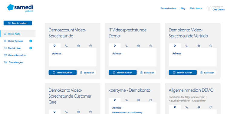 Das samedi Patientenkonto ermöglicht eine schnelle, einfache und transparente Online-Terminbuchung bei dem gewünschten Arzt inkl.