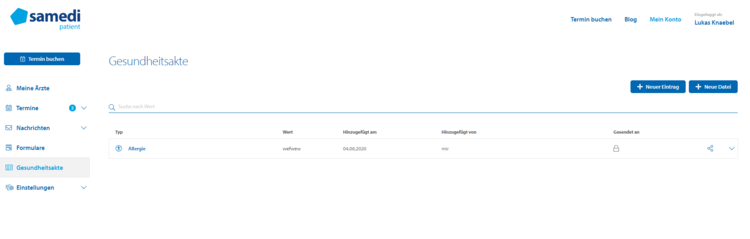 Persönliche samedi-Gesundheitsakte für medizinische Notfall- und Dauerdaten